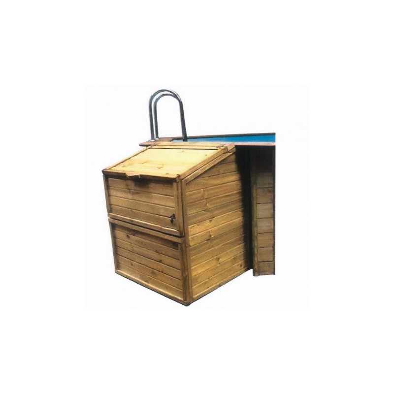 Fabricado en madera de pino silvestre autoclave clase III. Paneles pre-ensamblados para montaje por usted mismo. Para todos los tipos de piscinas. Perfecto para tener guardado y organizado tu sistema de filtración.