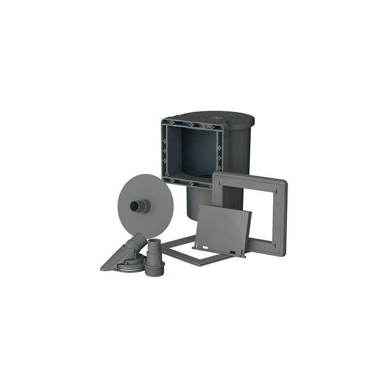 Conjunto de skimmer y boquilla de skimmer de la marca Gre específico para piscina elevada. Fabricado en ABS gris.